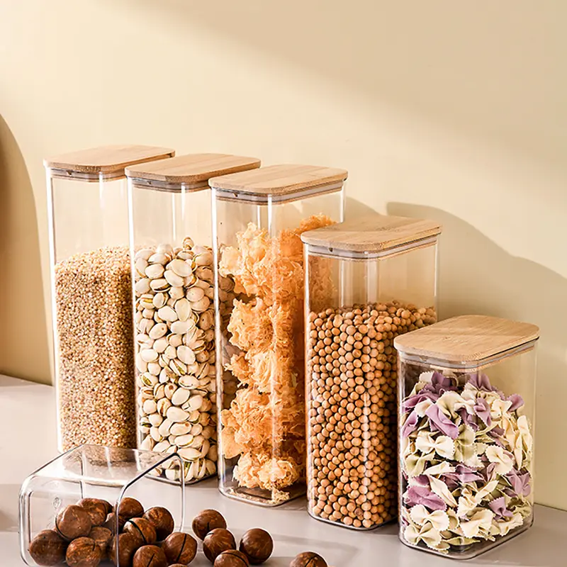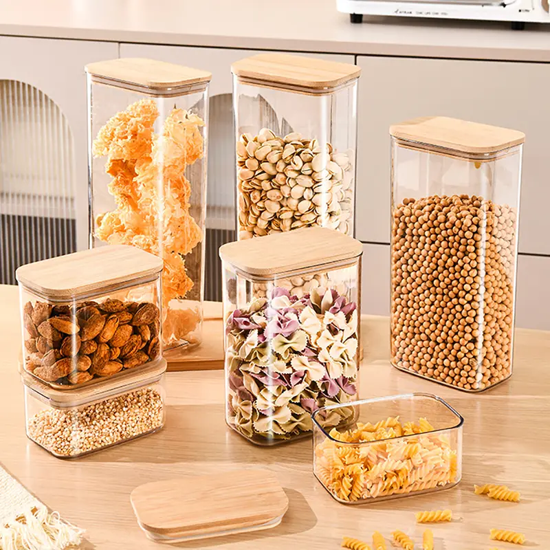 Hũ bảo quản bằng nhựa có nắp gỗ phù hợp với nhiều mục đích khác nhau như bảo quản bếp tại nhà, bảo quản trong tủ lạnh và bảo quản hàng khô trên mặt bàn. Nó có thể lưu trữ nhiều loại mặt hàng bao gồm ngũ cốc và ngũ cốc, kẹo, đồ ăn nhẹ, trà, gia vị và đồ khô. Nó gọn gàng và ngăn nắp, thuận tiện khi ra vào, giúp môi trường gia đình sạch sẽ hơn và giúp cuộc sống trong bếp trở nên dễ dàng hơn.