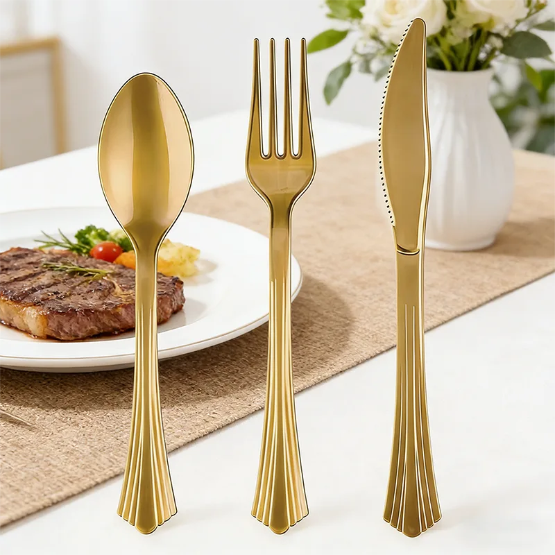 Nếu bạn cần Bảng giá dao kéo nhựa đuôi cá cao cấp, vui lòng tìm đến Công ty TNHH Sản phẩm nhựa Ninh Ba Powerr, một nhà sản xuất chuyên nghiệp tại Trung Quốc. Bộ này ẩn giấu sự tinh tế trong các chi tiết của nó. Các đầu dao có thiết kế hội tụ hình quạt 3D độc đáo, với các cạnh nhẵn tạo thành đường cong đuôi cá trang nhã mang lại cảm giác cầm nắm thân thiện với lòng bàn tay và vẻ ngoài điêu khắc. Lớp phủ vàng đồng nhất tạo ra các lớp sáng và tối tinh tế, mang lại cho nhựa cảm giác giống kim loại đáng kể, trong khi các đường gờ có thêm chức năng trang trí và chống trượt, đảm bảo cầm chắc chắn ngay cả với bàn tay dính dầu mỡ. Thường được kết hợp với những chiếc cốc và đĩa dùng một lần bằng vàng phù hợp để trang trí tiệc, phong cách mạ vàng thống nhất sẽ nâng tầm cách bài trí bàn ăn. Lý tưởng cho các bữa tiệc bên hồ bơi, tiệc nướng ngoài trời, đám cưới hoặc các sự kiện xây dựng nhóm, thiết kế sử dụng một lần của nó mang đến sự tiện lợi mà không làm mất đi sự sang trọng, khiến sự tinh tế và tính thực tế trở nên tương thích liền mạch.
